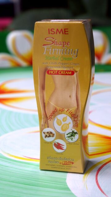 Антицеллюлитный горячий крем Shape Firming Herbal Cream от компании ISME содержит экстракты дикоростущих тайских трав, имбирь, чили, черный перец, морские водоросли и витамин Е. Крем ISME Shape Firming способствует уменьшению объёмов проблемных мест путем расщепления жировых клеток, образующих видимый целлюлит, улучшает кровообращение и отток лимфы, укрепляет стенки кровеносных сосудов и ускоряет обменные процессы в коже. Кожа разглаживается, становится упругой, земетен эффект разогрева кожи при применении крема.