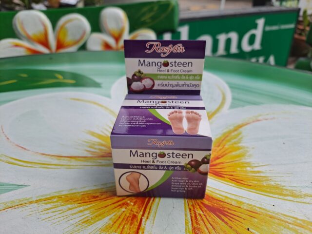 Очень нежный, но при этом очень питательный и насыщенный крем для пяток и ног Heel&Foot Cream Mangosteen. В его основе – экстракт кожуры мангустина, очень популярный ингредиент в тайской косметике из-за своих свойств.