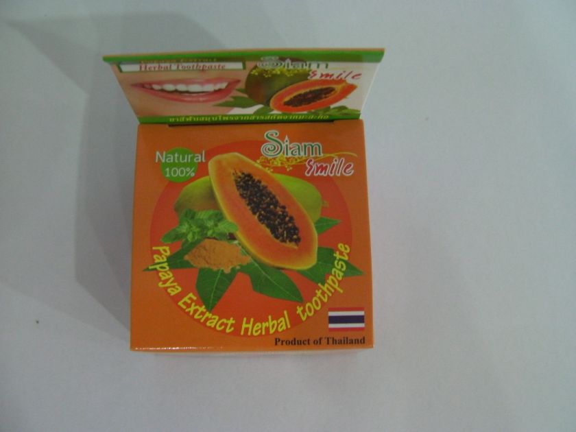 Тайская круглая отбеливающая паста для ухода за ротовой полостью с экстрактом папайи отлично справляется с проблемой налета, повышенной чувствительностью зубов и неприятным запахом.
