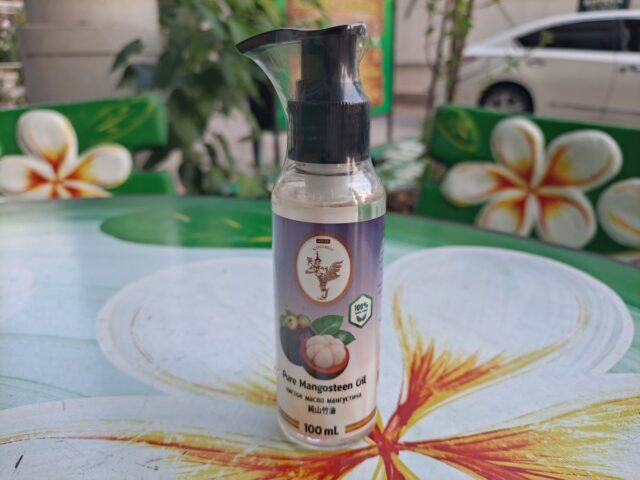 Масло для тела с экстрактом мангустина содержит множество полиненасыщенных жирных кислот, за счет которых защищает кожу от ультрафиолетовых лучей, устраняет пигментацию, уничтожает микробы и бактерии.