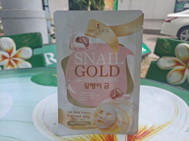 В состав эссенции, которой пропитана маска, входит фильтрат муцина улитки, золото, а также комплекс органических экстрактов целебных растений.