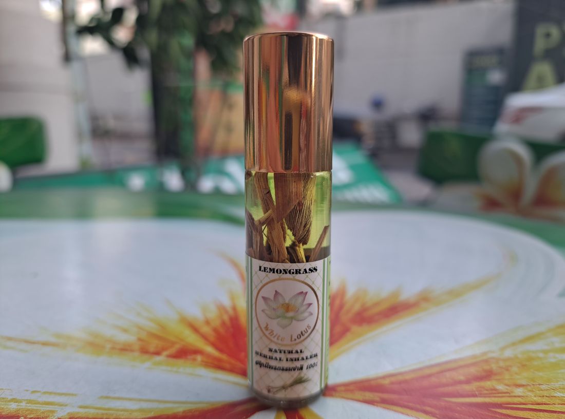 Тайский ингалятор с лемонграссом – популярное средство от укачивания, головной боли и насморка, очень приятно пахнущий и дополнительно настоянный на свежем лемонграссе.