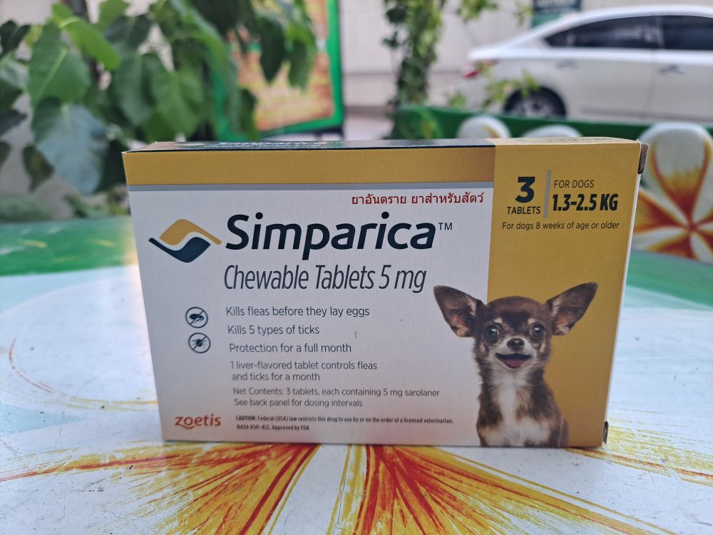 СРЕДСТВО ОТ КЛЕЩЕЙ И ПАРАЗИТОВ СИМПАРИКА ДЛЯ СОБАК ВЕСОМ ОТ 1,3 ДО 2,5 КГ. 5 мг