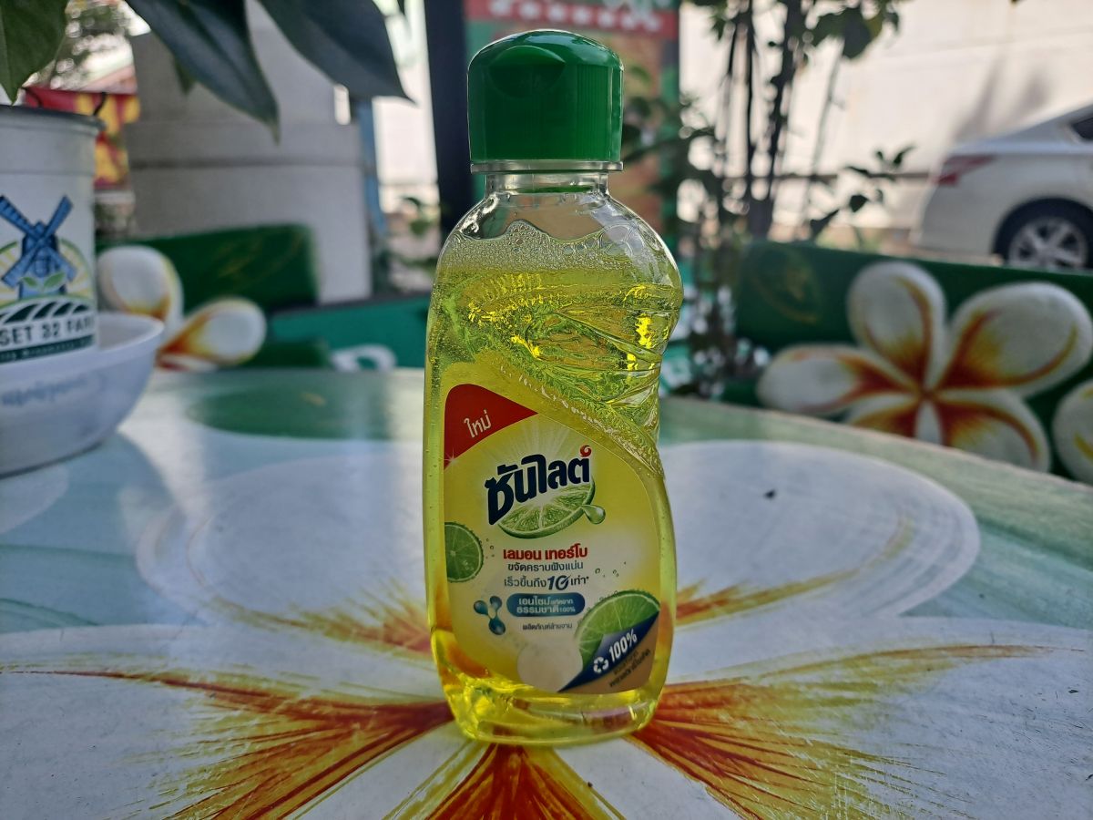 Важно, что тайское средство для мытья посуды полностью смывается с поверхности. Просто сполосните посуду после использования средства.