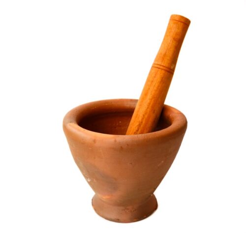Ступка сделана из дерева. В ней можно измельчать самые разные специи и травы: кориандр, фенхель, корни куркумы, имбиря, галангала и т.д. Вкус у таких измельченных в ступке продуктов получается значительно более выраженным, естественным, чем у тех же специй, измельченных с помощью блендера, кофемолки и других кухонных агрегатов.