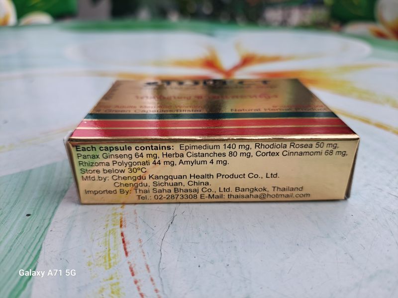 - Эпимедиум. Обладает комплексным воздействием на организм мужчин и женщин, выражающимся в выделении тестостерона у мужчин и эстрогена у женщин, что ведёт к повышению потенции и выносливости у мужчин и усилении либидо у женщин.