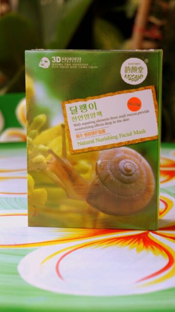 Южнокорейская маска на текстильной основе с фильтратом улиточной слизи в качестве главного активного компонента.