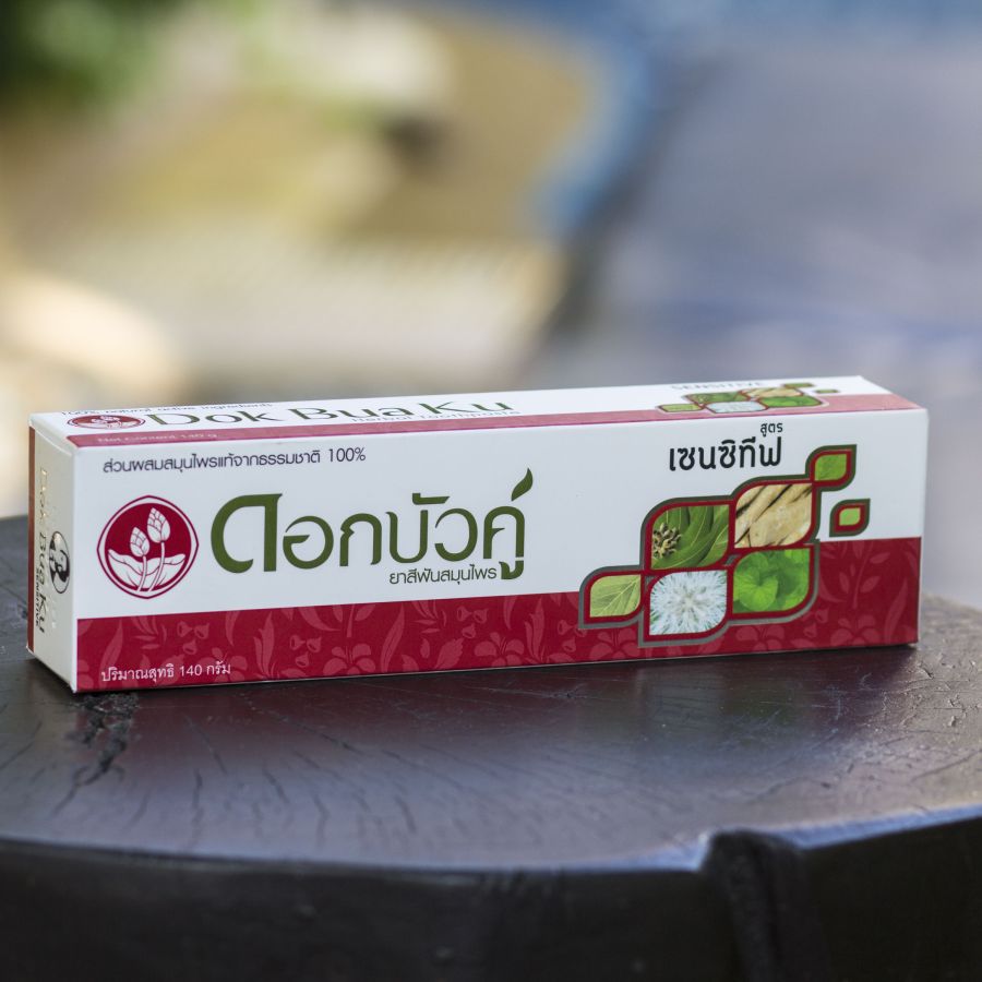 Специально разработанная для качественного ухода за зубами с чувствительной эмалью, зубная паста Twin Lotus Dok Bua Ku Sensitive содержит большей частью из травяных компонентов. Их наличие объясняет необычный приятный запах лечебных трав.