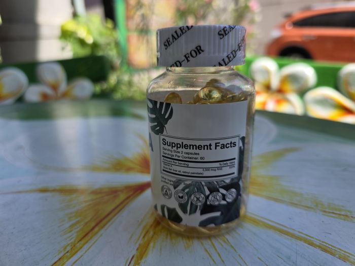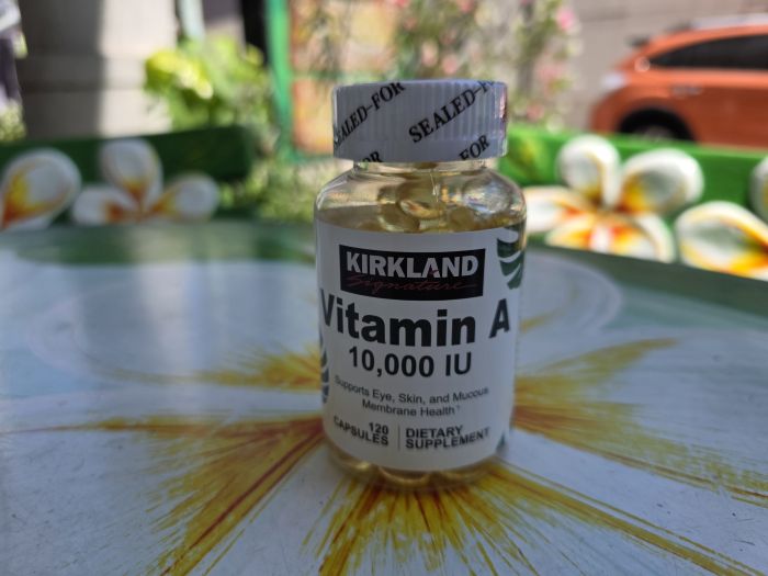 Каждая капсула Vitamin A Kirkland Signature содержит 10,000 IU (3000 МЕ), что обеспечивает эффективную поддержку организма.
