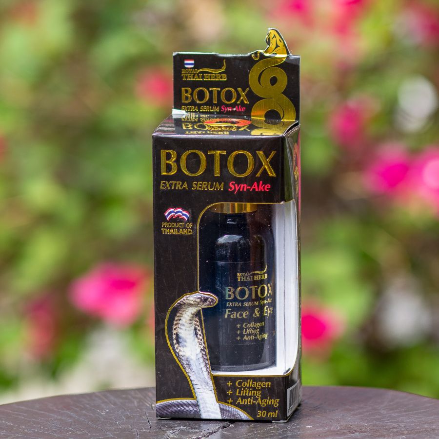 – пептиды змеиного яда. Они действуют особым образом на мышцы лица, словно частично парализуя их, подобно тому, как работают инъекции ботокса;